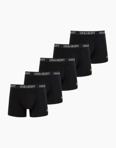 5-Pack Icon Cotton Stretch Boxer Trunks, All Black