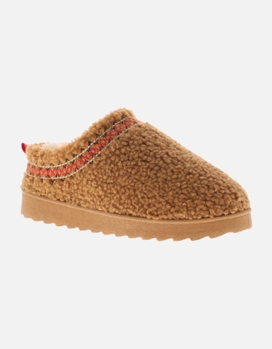 Womens Slipper Cuddle Bootee Faux Fur Lining Leather Suede Tan Uk Size