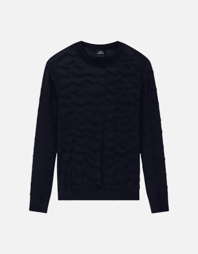 Man Knitted Pullover Tonal Brandin Navy