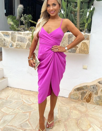Navy Floral Print Short Sleeve Belted Wrap Midi Dress