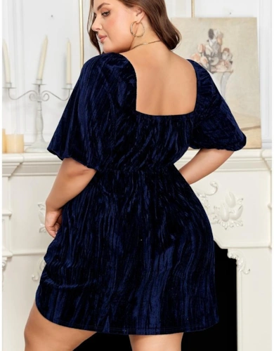 Blue Floral Embroidered Square Neck Puff Sleeve Ruffled Mini Dress