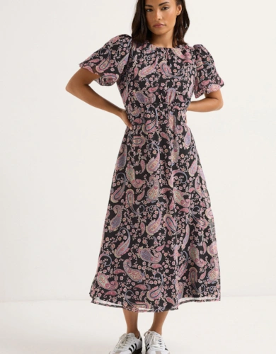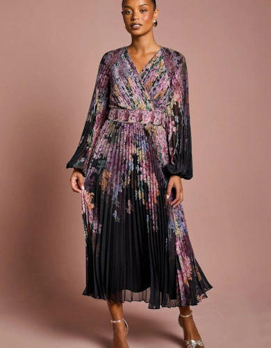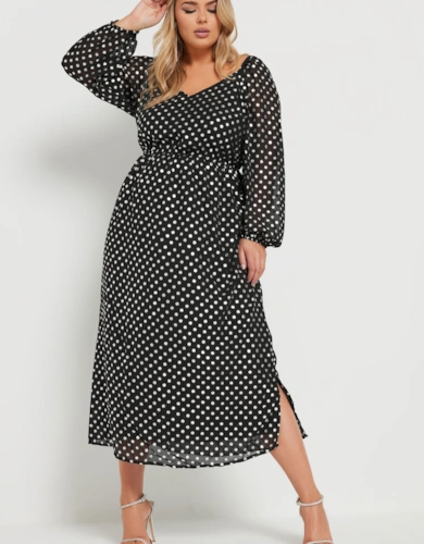 Embellished And Chiffon Sleeve Figure Form Knit Maxi Dress