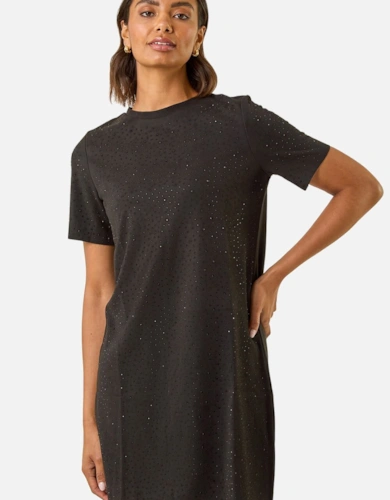 Embellished And Chiffon Sleeve Figure Form Knit Maxi Dress