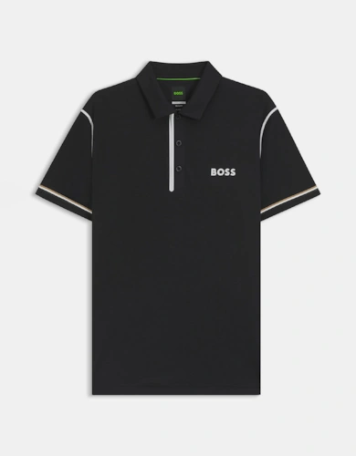 Boss Green Paddy Mens Cotton-Piqué Polo Shirt With Contrast Logo - Black 001
