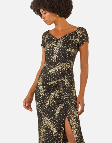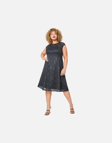 Viscose Satin Woven Maxi Dress With Lace Panelled Detail