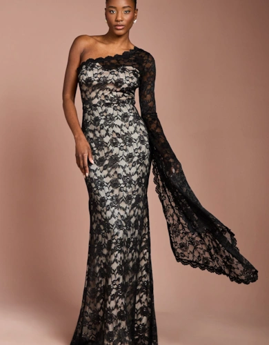 Viscose Georgette Pleated Woven Maxi Dress With Sheer Lace Panel Detail