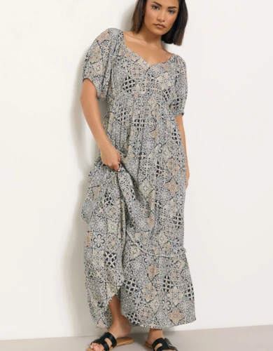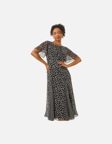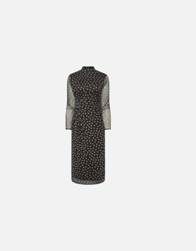 Black Metallic Print Full Sleeve Maxi Dress