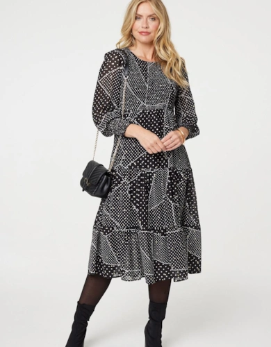 Ikat Print 1/2 Sleeve Relaxed Short Dress