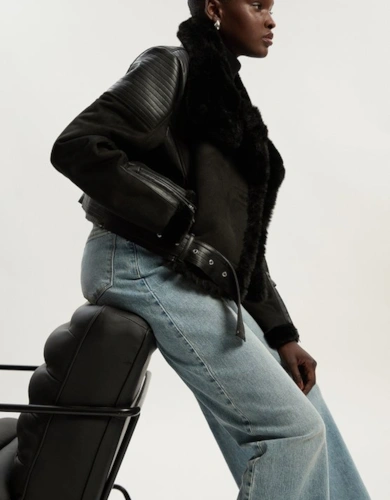 Brushed Wool And Shearling Buckle Detail Short Tailored Coat