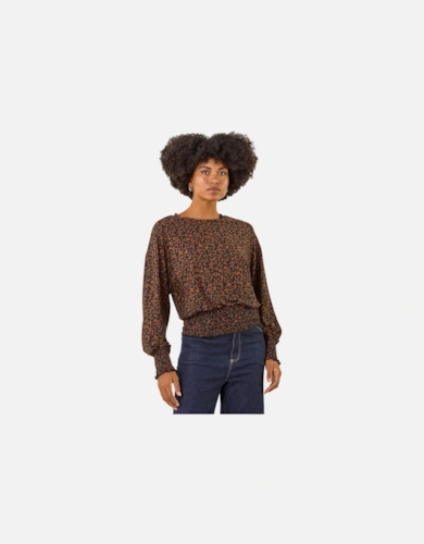 Shirred Cotton Woven Plunge Neck Short Sleeve Top