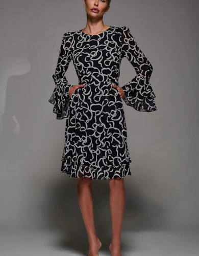 Animal Print 1/2 Flare Sleeve Midi Dress