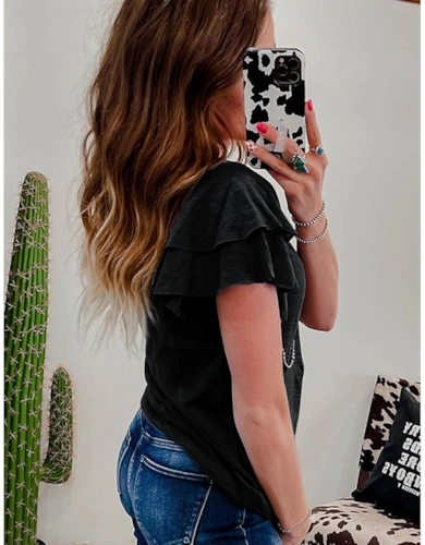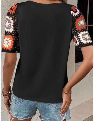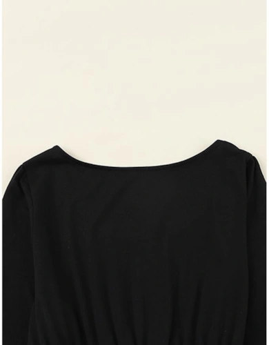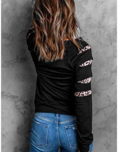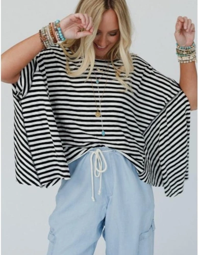 Black Stripe Contrast Ribbed Banding Long Sleeve Blouse Loose Shorts Set