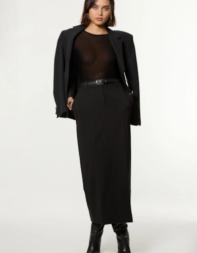 Petite Compact Stretch Asymmetric Maxi Skirt