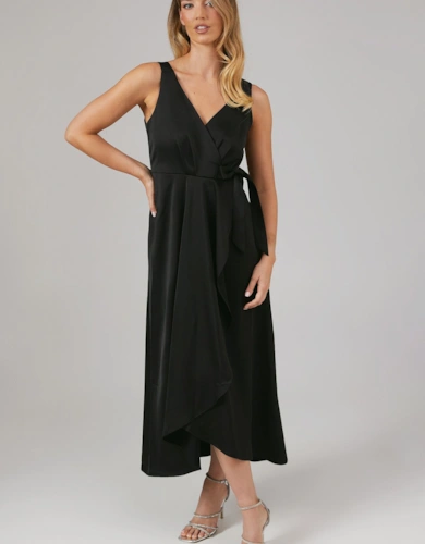 Tailored Tuxedo Belted Wrap Jumpsuit