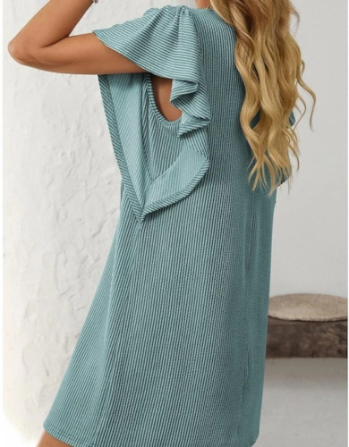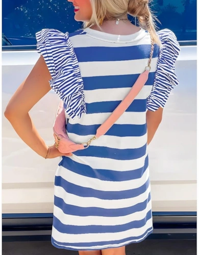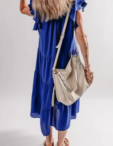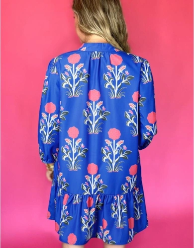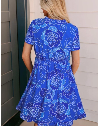 Sky Blue Floral Print Self-Tie Straps Flowy Ruffle Long Dress