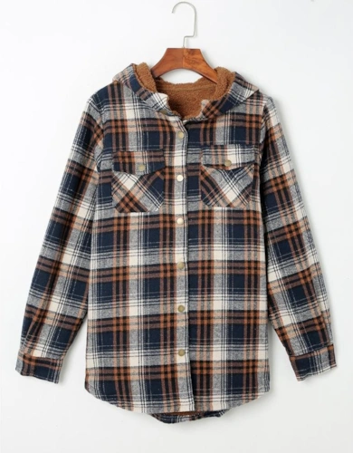 Plaid Pattern Sherpa Lined Hooded Shacket