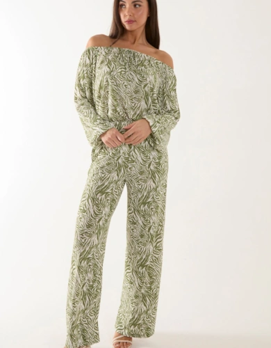 Khaki Palm Print Jumpsuit