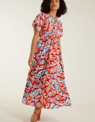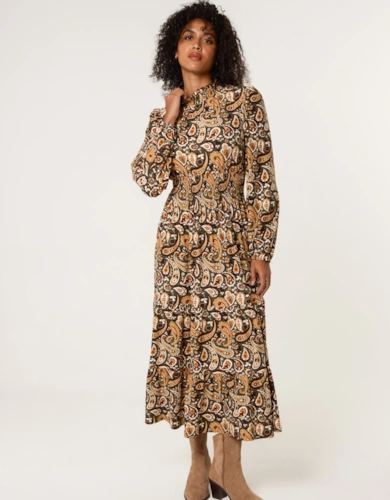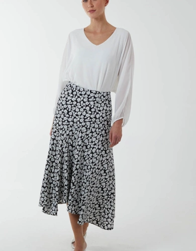 Black Floral Crew Neck Mesh Midi Dress