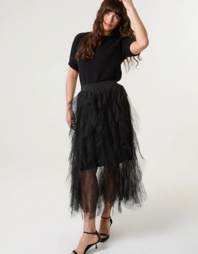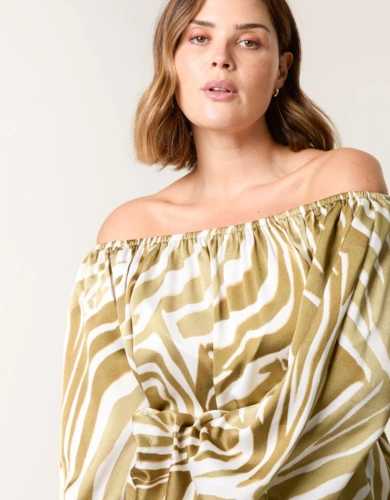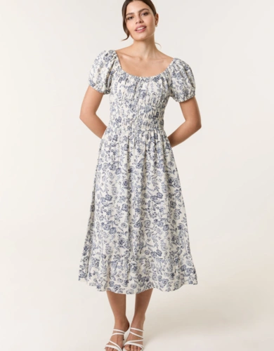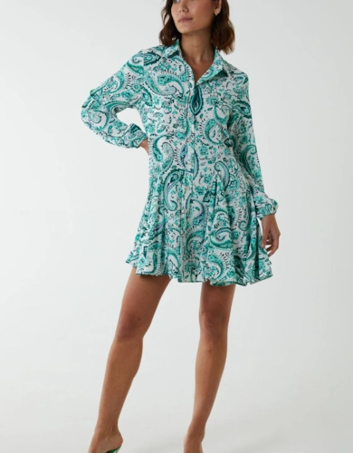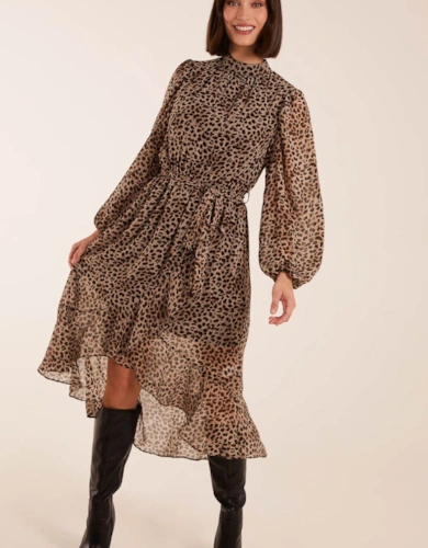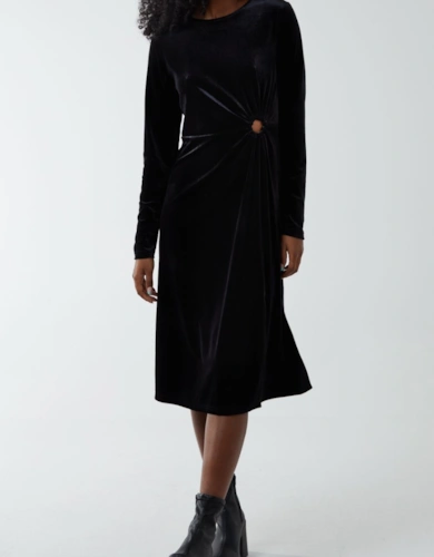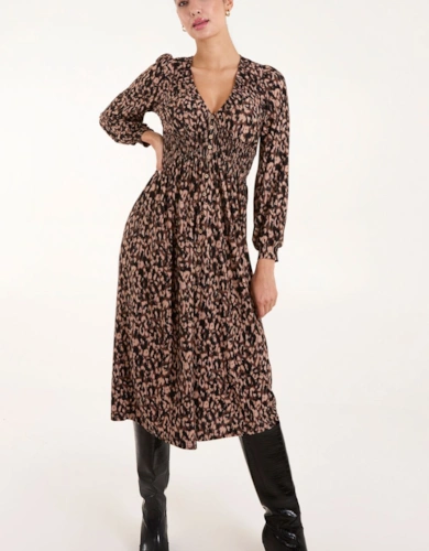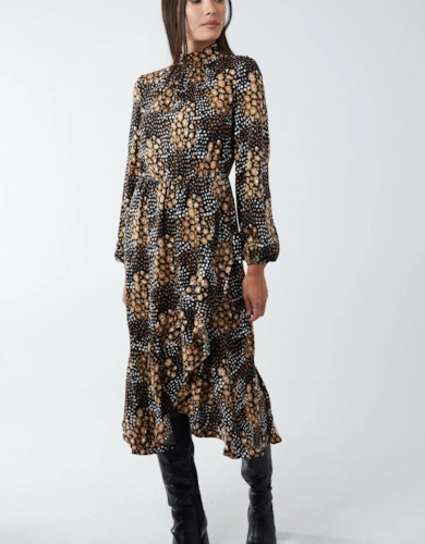 Orange Tie Neck Keyhole Shirred Waist Dress