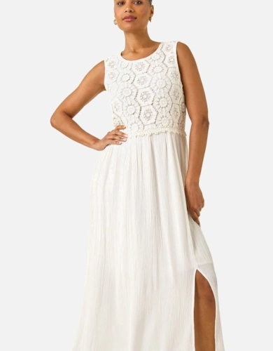 Pleated Floral Bodice Detail Woven Maxi Dress