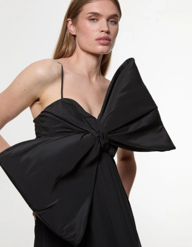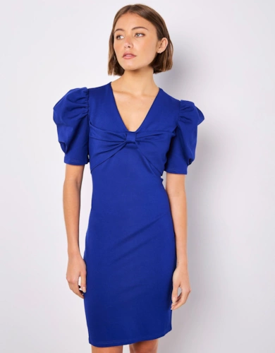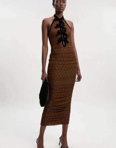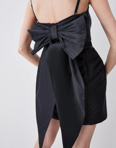 Metallic Floral Tailored Bow Detail Mini Dress