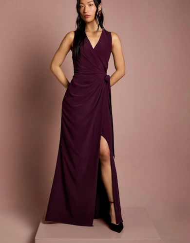 Twist Detail Cowl Neck Satin Maxi Bridesmaid Dress