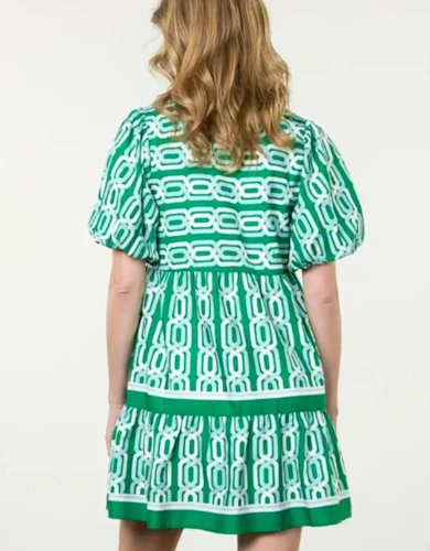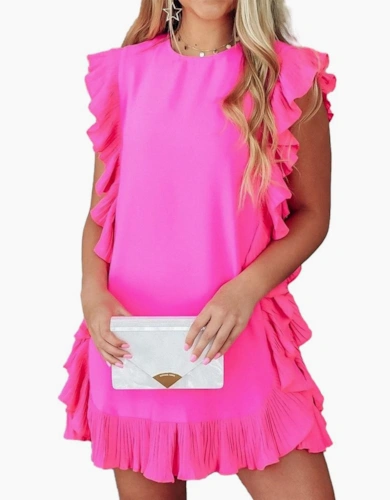Bright Pink Solid Color Puff Sleeve Tie Front High Waist Mini Dress