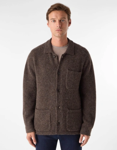 Heywood Mens Alpaca Wool Blend Knitted Overshirt - Chocolate