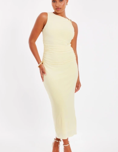 Premium Viscose Linen Woven Shirt Dress With Gold Buckle Belt
