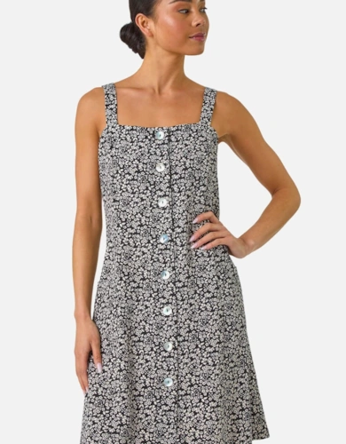 Long Sleeve Contrast Collar Pleated Button Detailed Woven Midi Dress