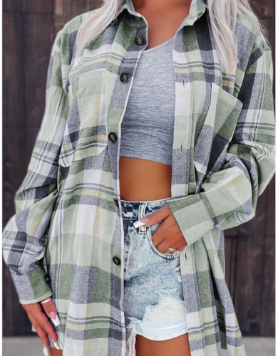 Green Plaid Button Up Patch Pocket Shirt