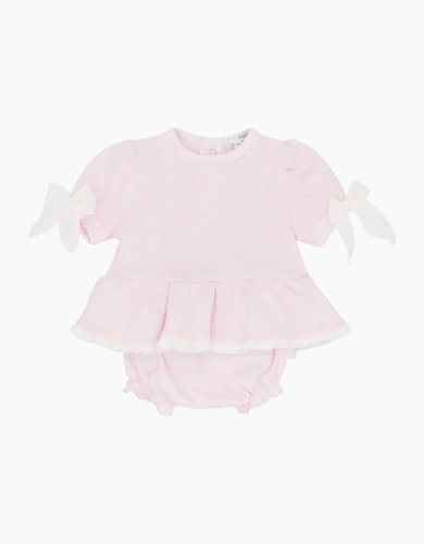Girls Pale Pink Waffle Bow Jam Pant Set