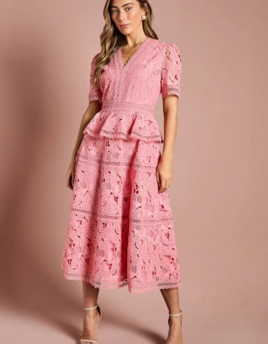 Premium Floral Satin Lace Midi Dress