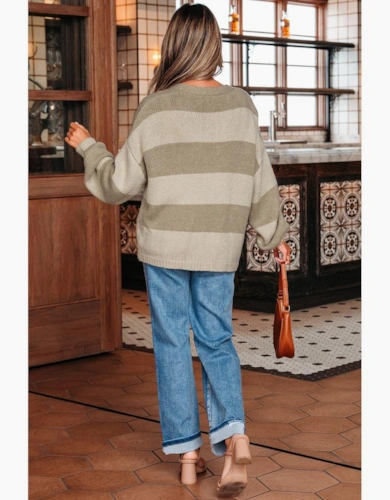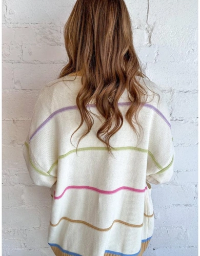 Rose Stripe Colorful Puff Sleeve Drop Shoulder Loose Cardigan