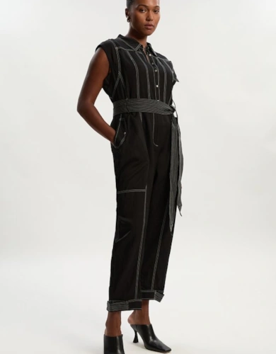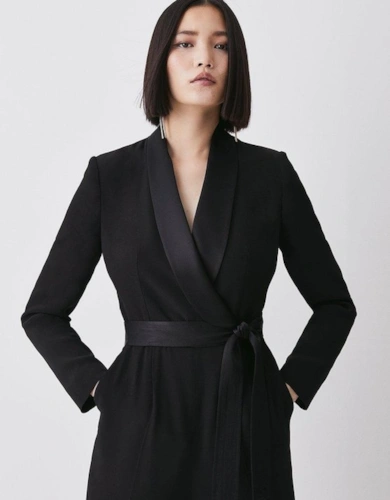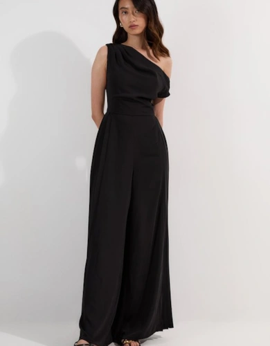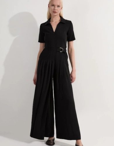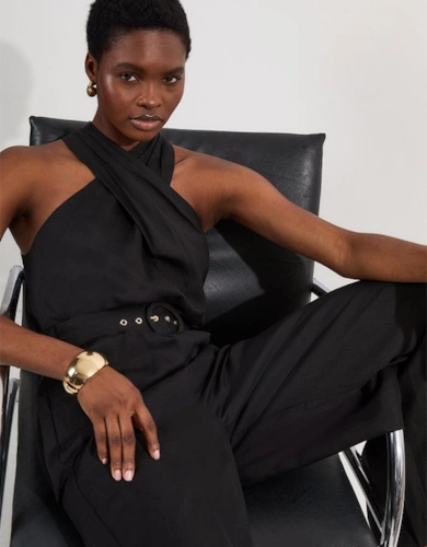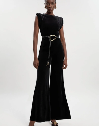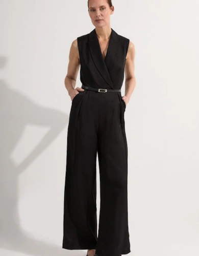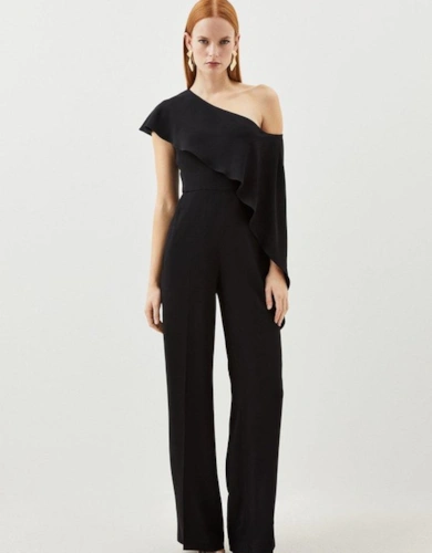 Compact Stretch Bandeau Tailored Wide Leg Jumpsuit