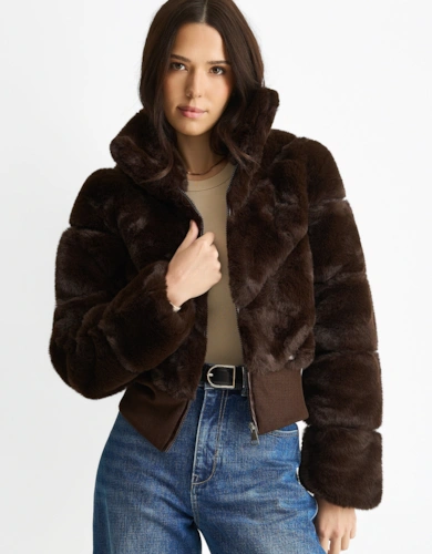 Chocolate Faux Fur Lapel Collar Longline Coat