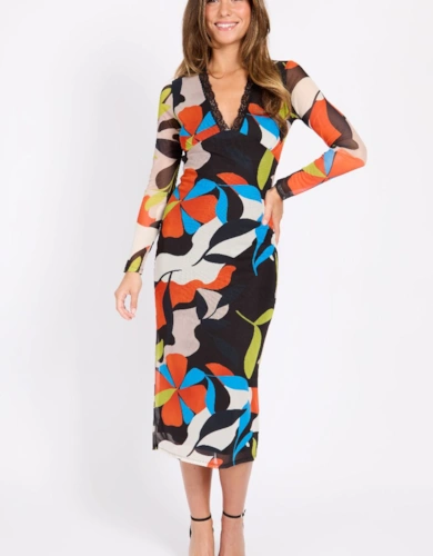 Petite Soft Tailored Colour Block High Neck Pleated Midi Dress