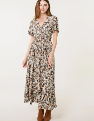 Square Neck Smock Midi Dress With Below Pocket