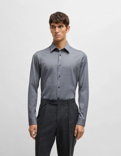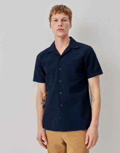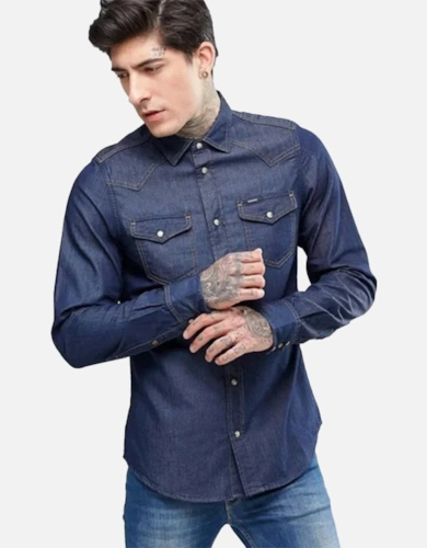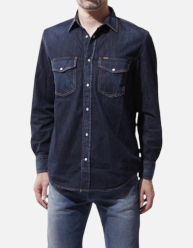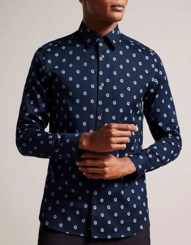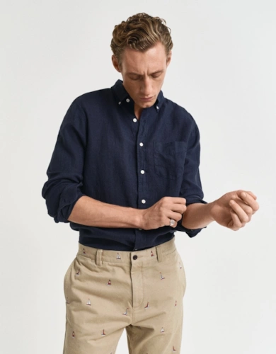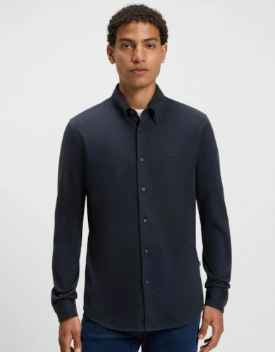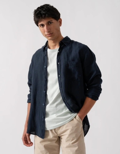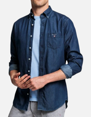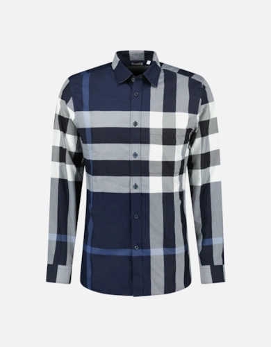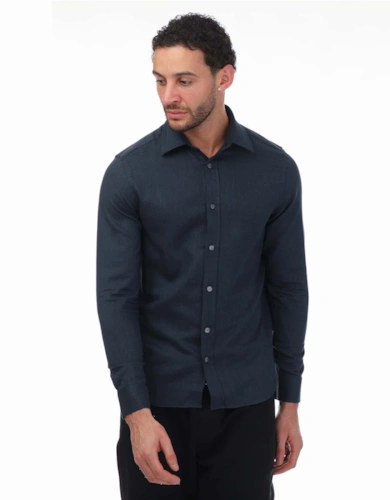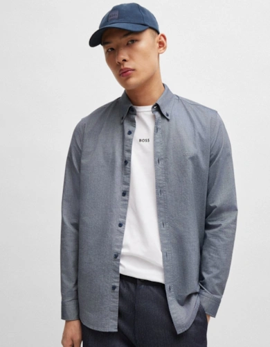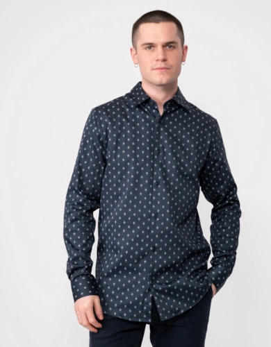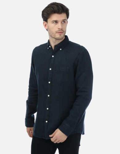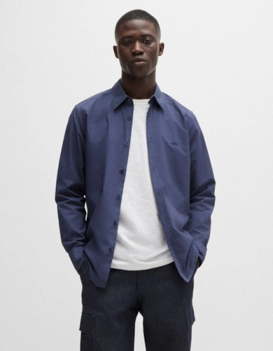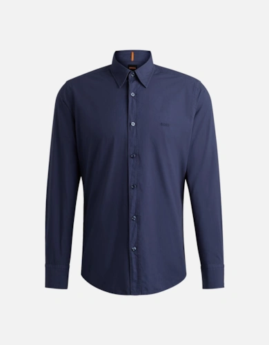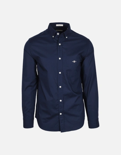Mens Regular Fit Long Sleeve Poplin Shirt - 410 Marine