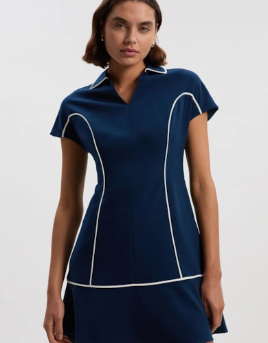 Tailored Crepe Tipped Tailored Mini Shirt Dress
