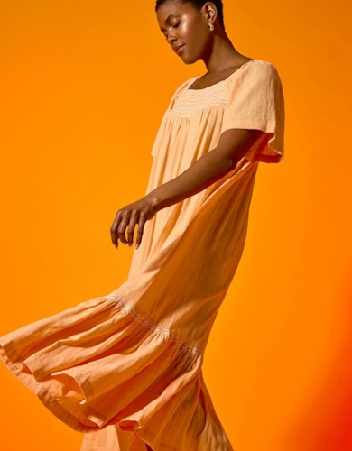 Floral Print Satin Crepe Woven Angel Sleeve Midi Dress