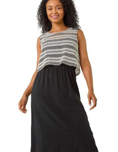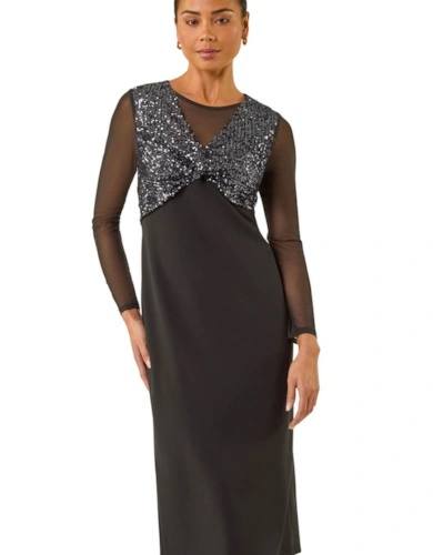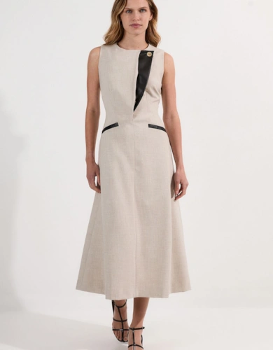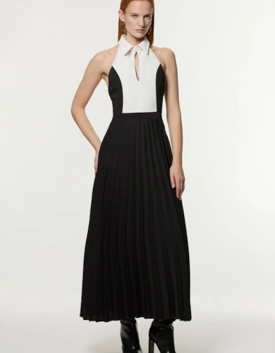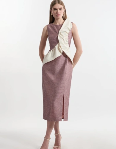 Compact Stretch Taffeta Mix Contrast Drama Sleeve Maxi Dress