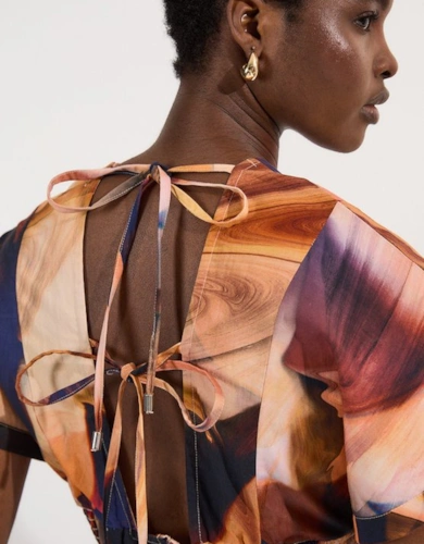Tencel Cotton Contrast Zip Up Woven Peplum Top