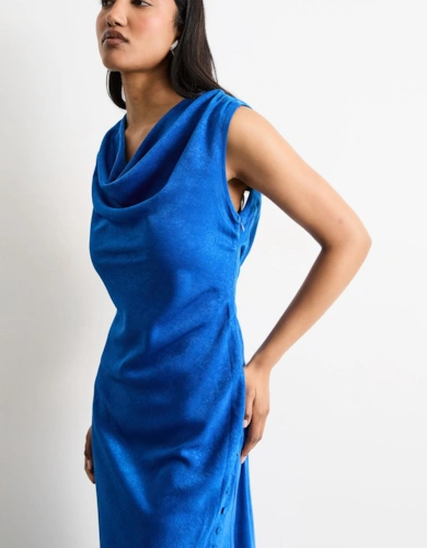 Green Printed Strappy Cowl Neck Gathered Skirt Midi Dress
