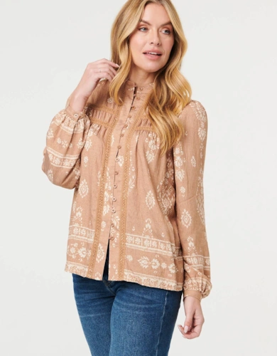 Devoure Flared Sleeve Woven Blouse With Trim Detail