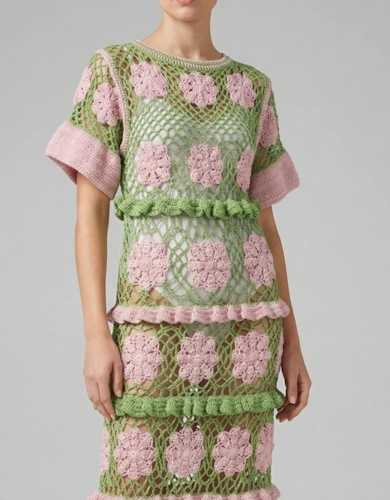 Black Crochet Lace Panel Elasticated Waist Midi Dress