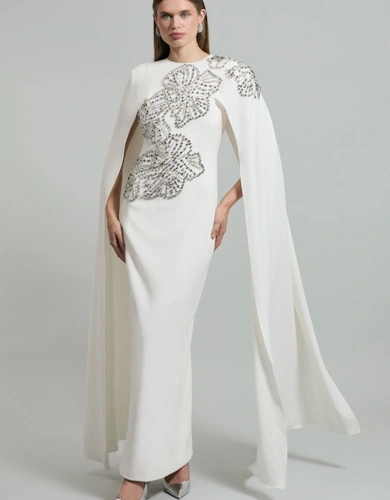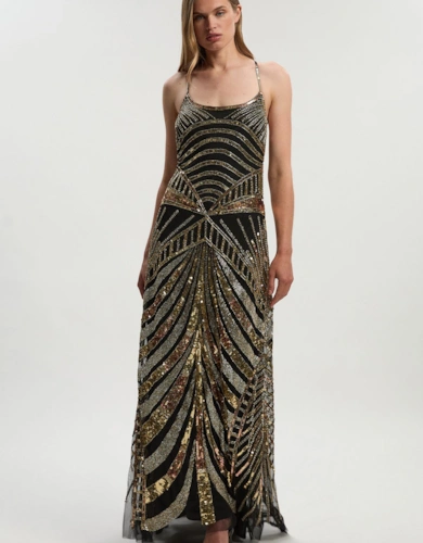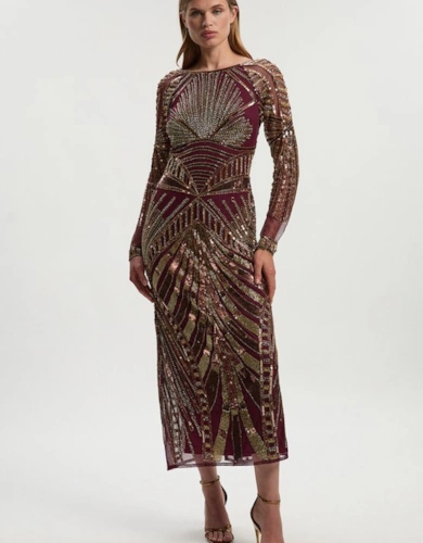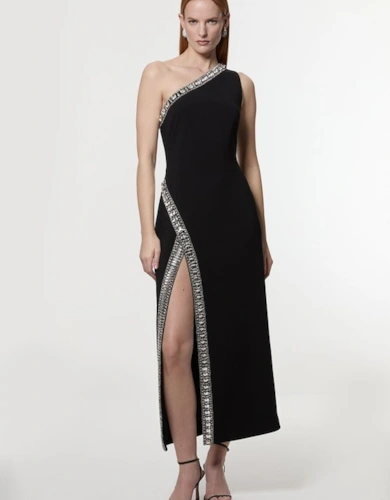 Premium Mirrored Crystal Embellished Woven Midi Dress