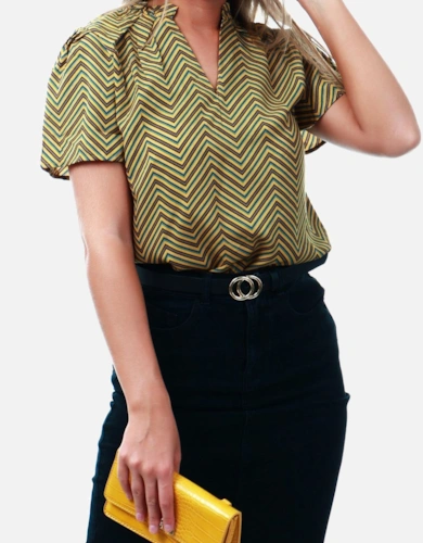 Green Splotch Print 3/4 Sleeve Midi Dress