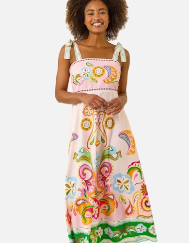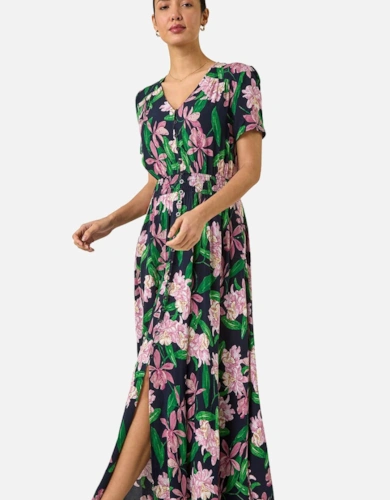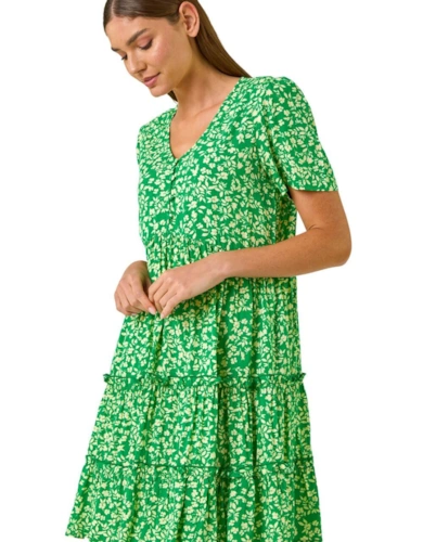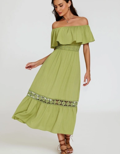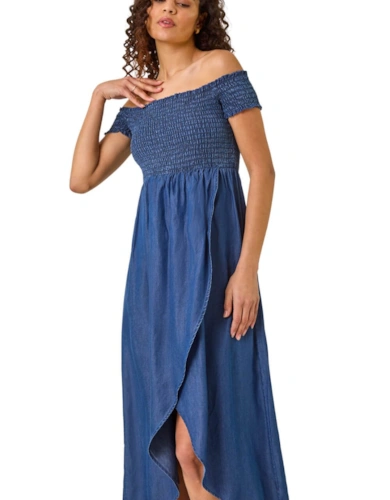 Bardot Puff Sleeve Elasticated Detail Midi Dress In Turquoise Green