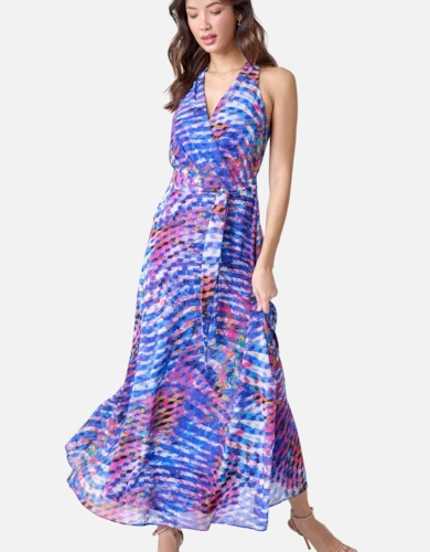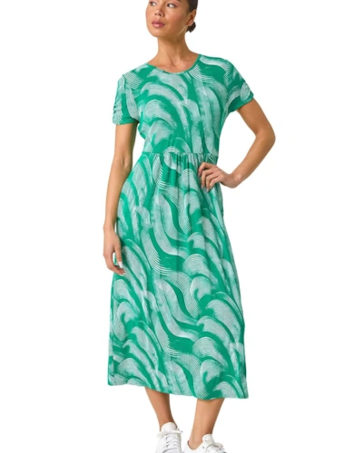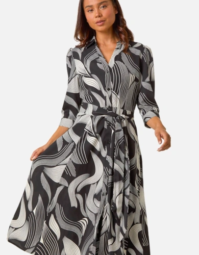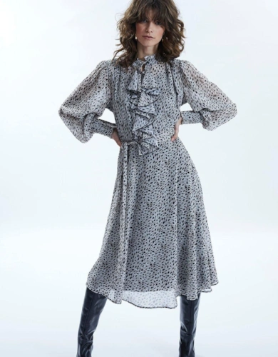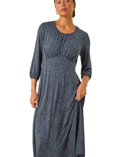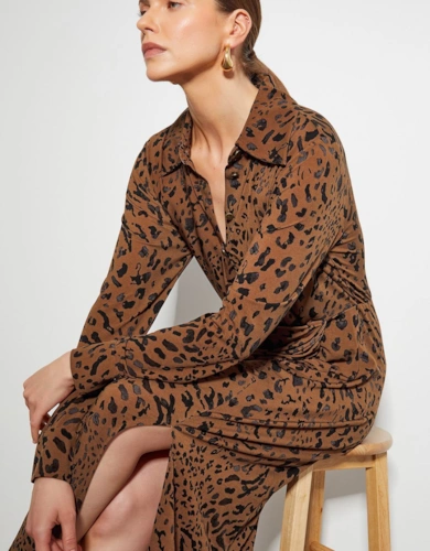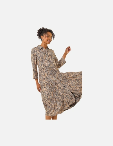 Animal Print Sheer Tie Waist Midi Dress
